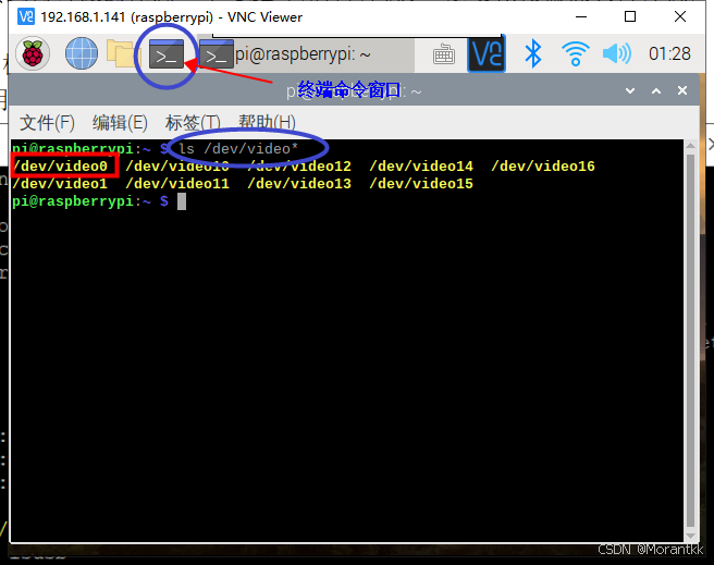 2、树莓派终端可以用于检测外部摄像头设备的命令是: ** ls /dev/video* ** (输入指令后回车,个别情况可能看不到video0也能够使用摄像头)