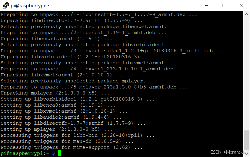 3、安装mplayer播放器: ** sudo apt-get install mplayer -y **